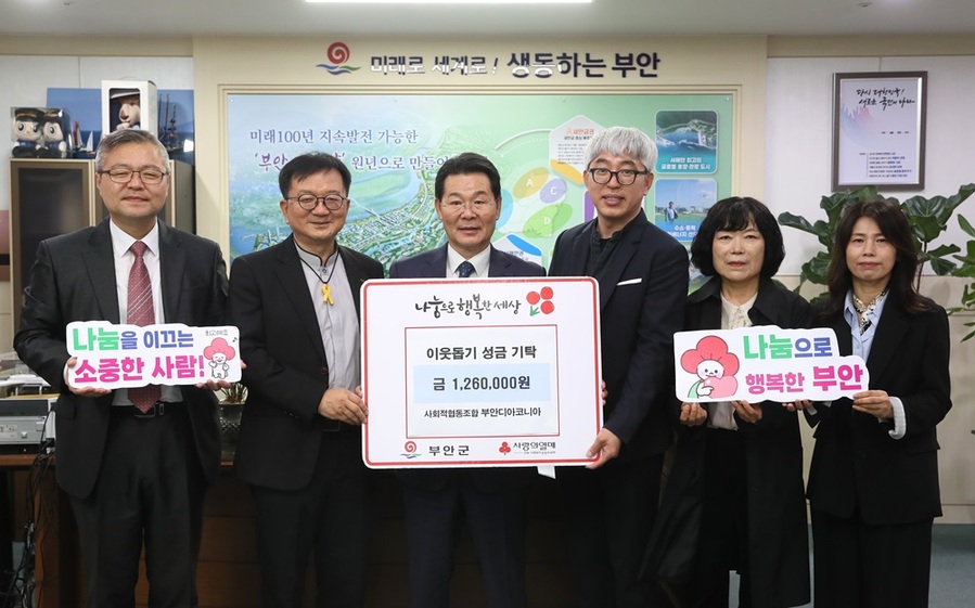 사회적협동조합 부안디아코니아(이사장 이춘섭)는 지난 328() 부안군청 군수실에서 이웃돕기성금 전달식을 진행했다.