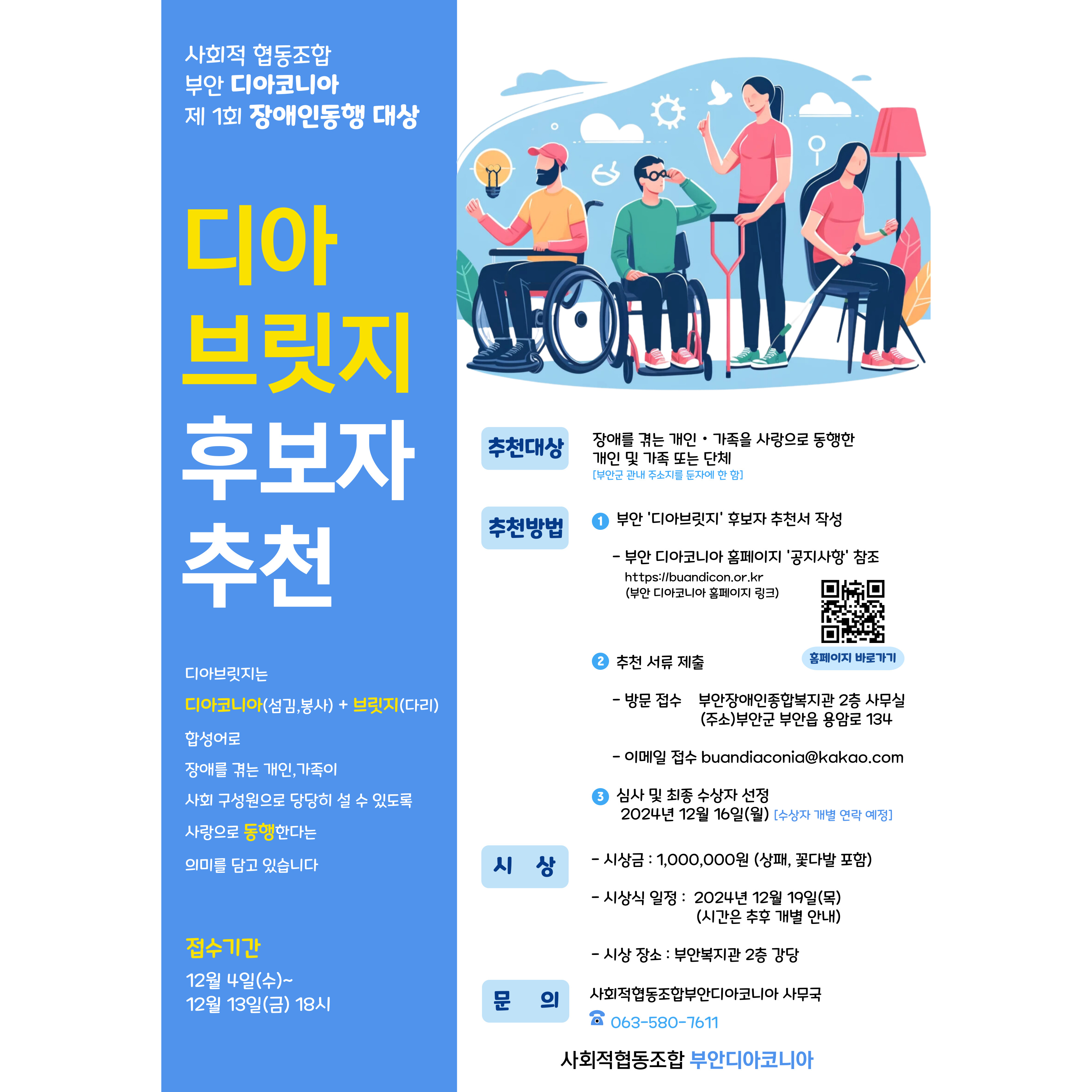 제1회 사회적협동조합부안디아코니아 “디아브릿지” 장애인동행대상 후보자 추천 공고
